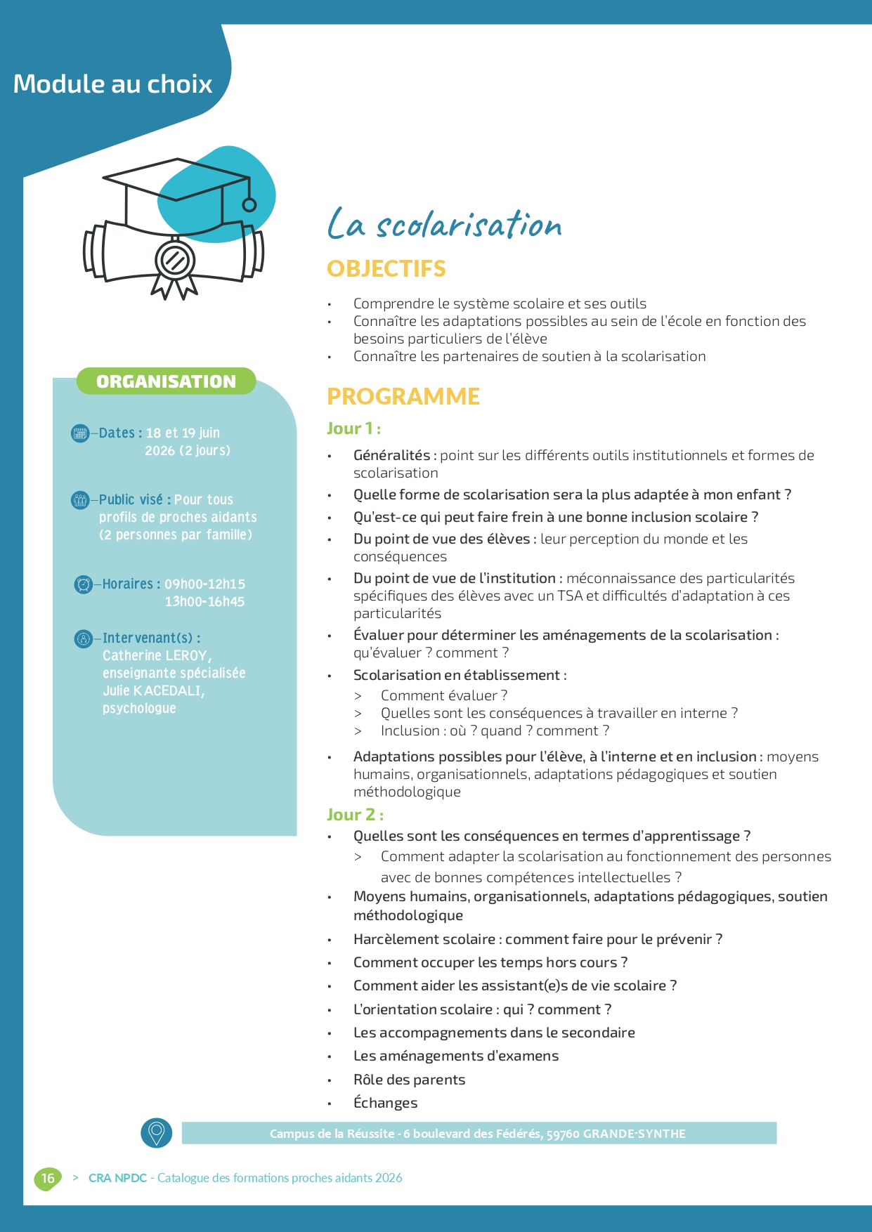 Le CRA vous propose une large gamme de formations adaptées à tous les profils : personnes avec TSA, familles, professionnels et étudiants.
