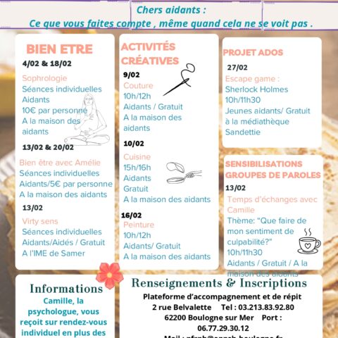 Téléchargez le programme des activités et des sorties de février (pdf)