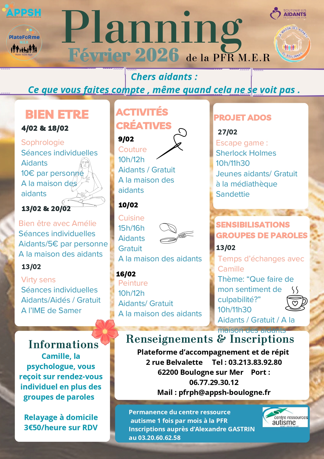 Planning des activités de la plateforme d’accompagnement et de répit MER