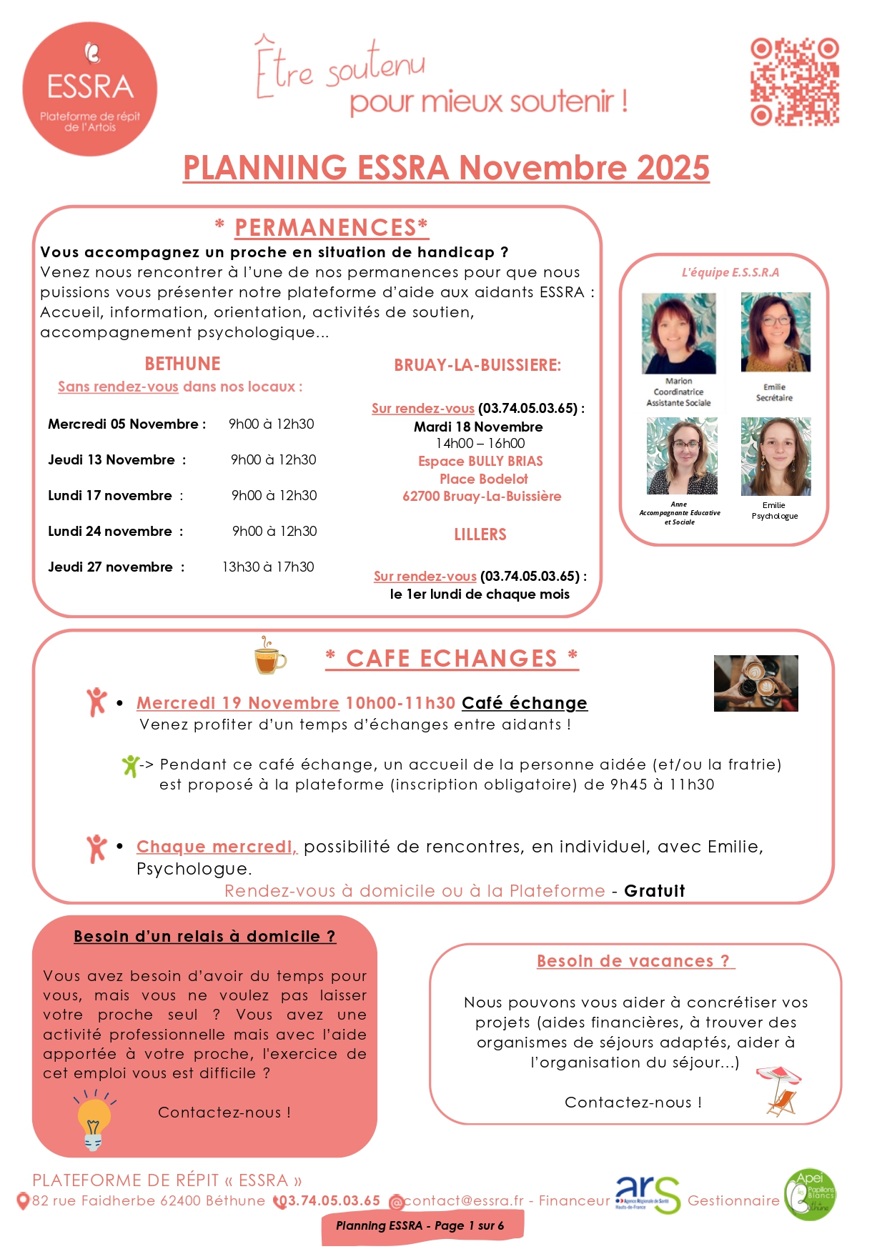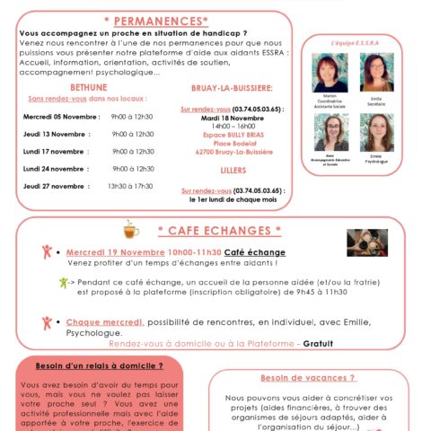 La Plateforme de Répit « ESSRA » (Equipe Spécialisée de Soutien et de Répit à destination des Aidants de personnes en situation de handicap)
