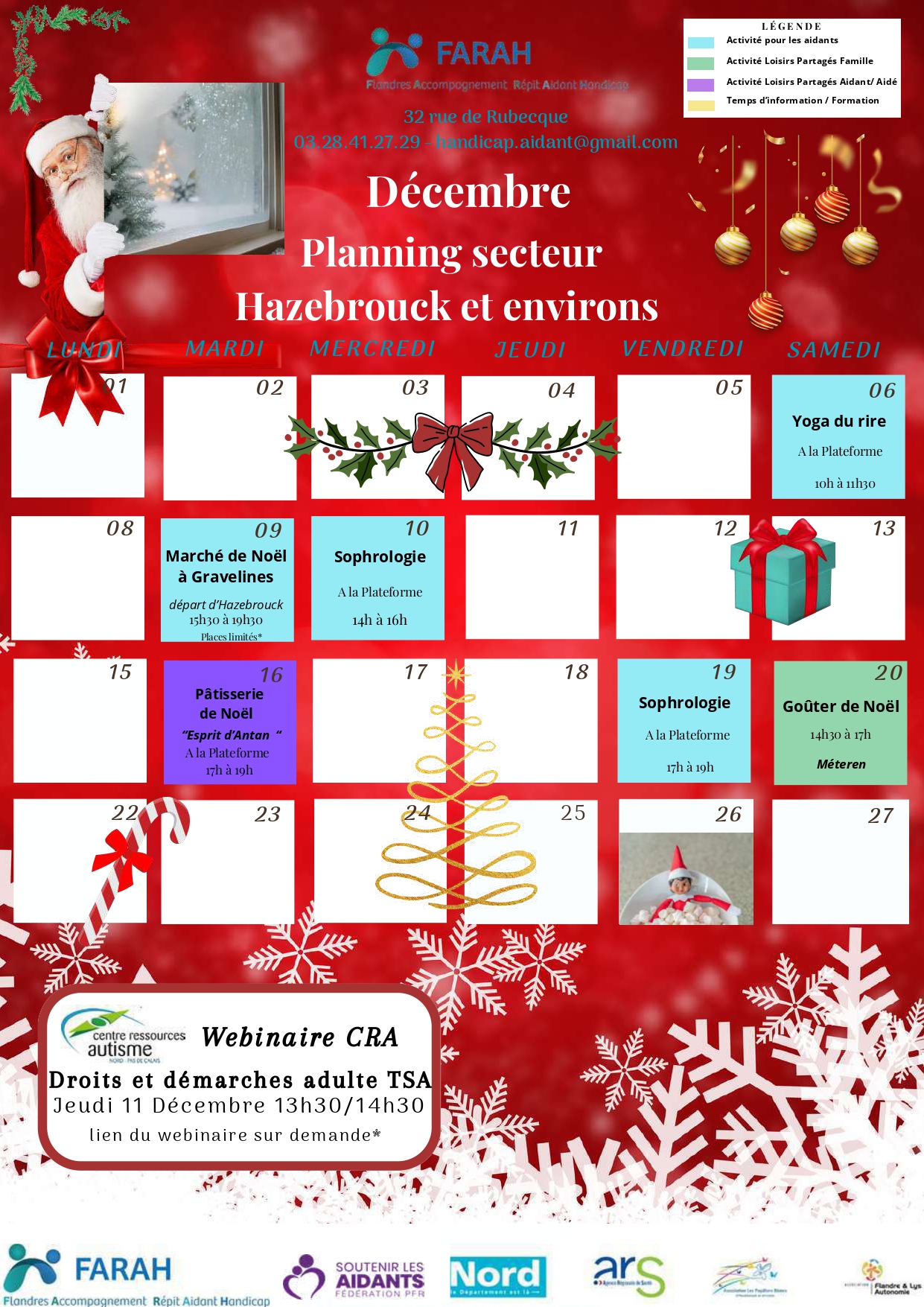 Planning des activités de la plateforme de répit FARAH des territoires de la Flandre Lys et de la Flandre Intérieure
