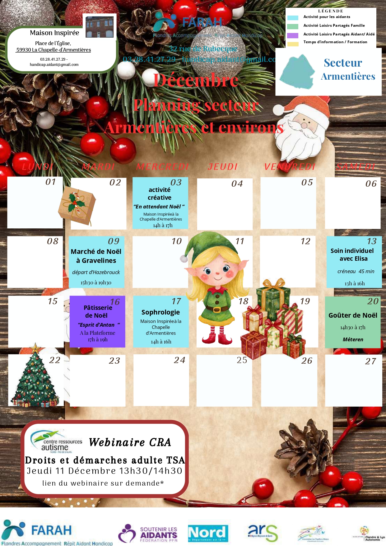 • Les permanences délocalisées se poursuivent : sur Armentières, Cassel et La Gorgue pour informer les Aidants au plus près de chez eux.