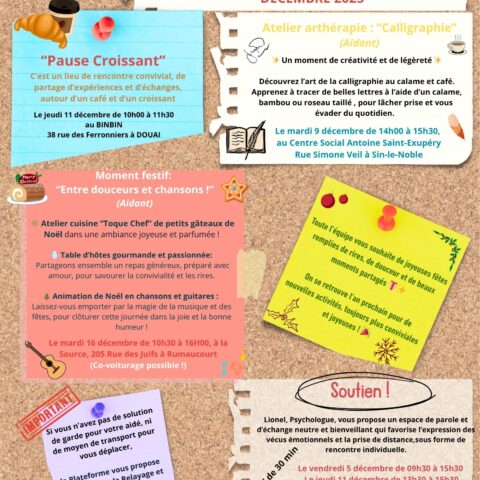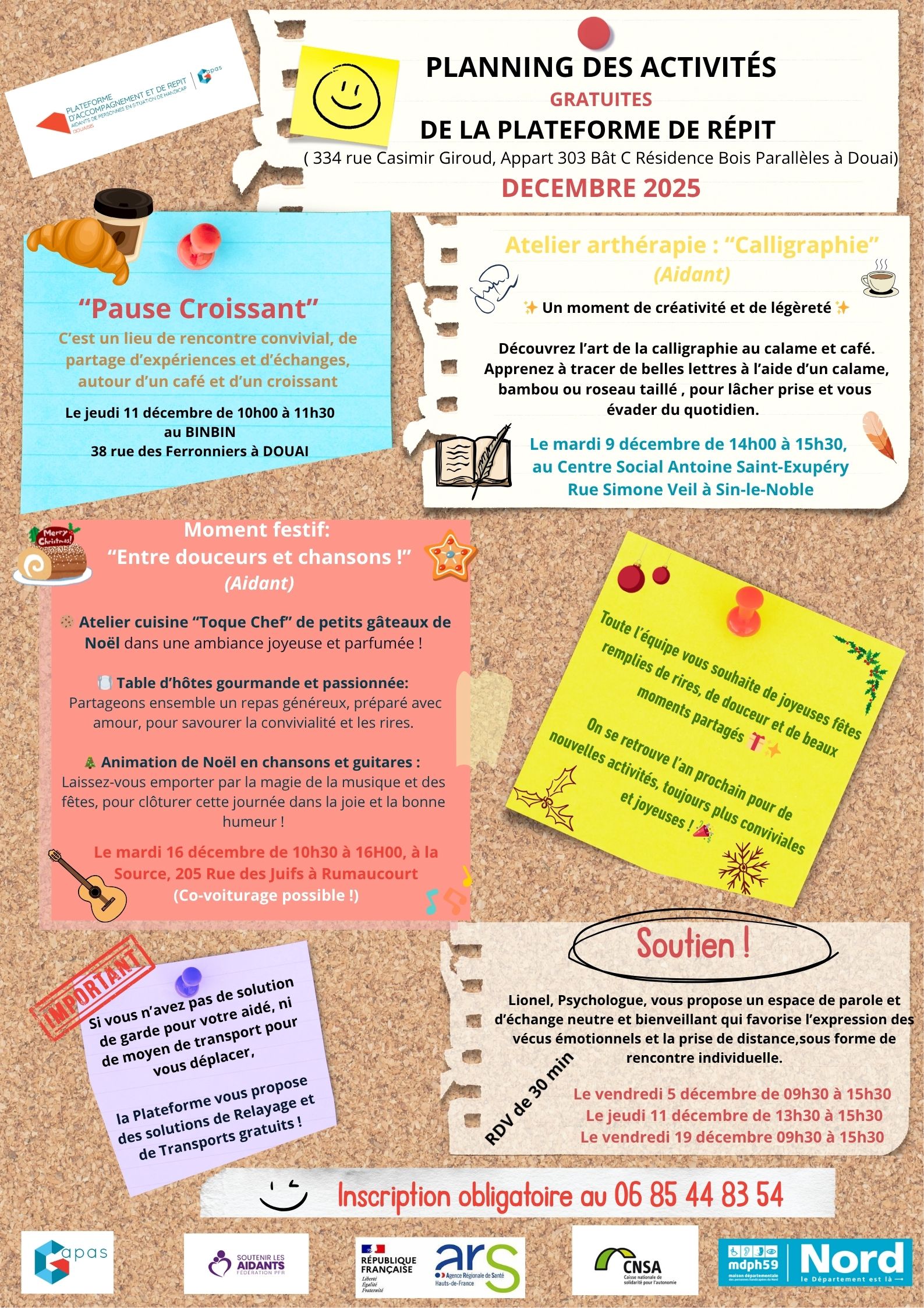 Planning des activités Plateforme d’Accompagnement et de Répit des aidants de personnes en situation de handicap du Douaisis
